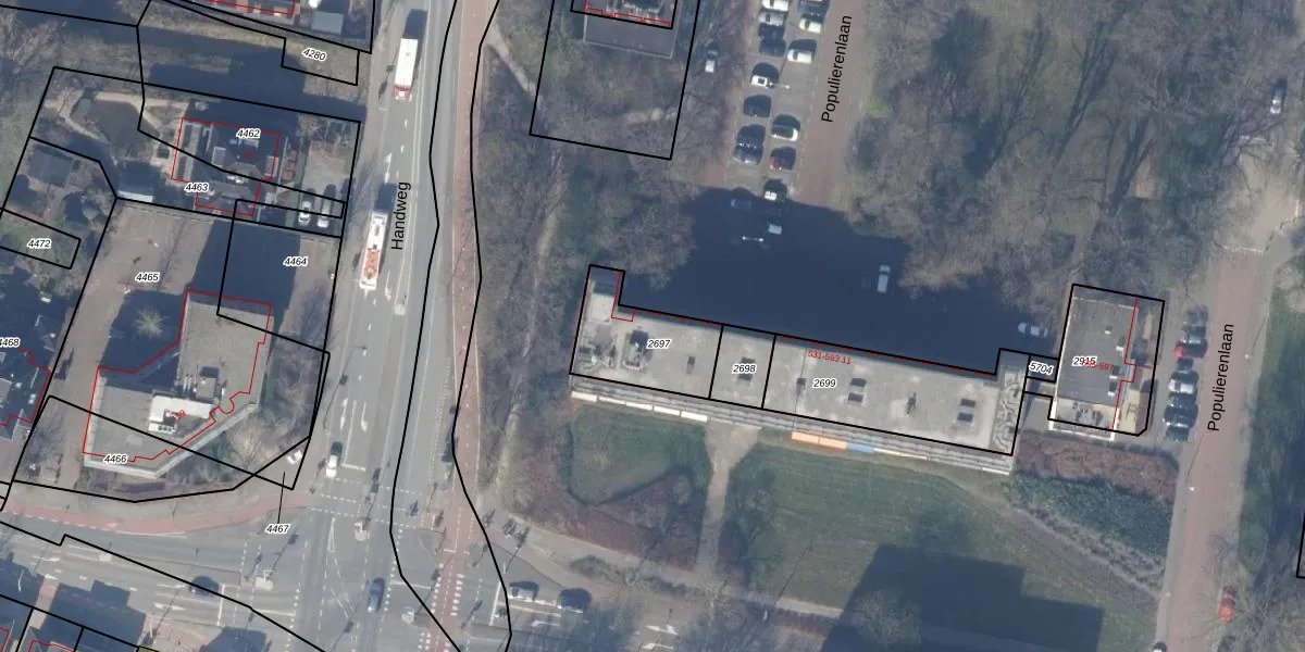 Populierenlaan 593-01 is gelegen op kadastraal perceel ASV00M2697. Deze kadastrale aanduiding is uniek en wordt gebruikt door het Kadaster om eigendomsrechten en andere zakelijke rechten vast te leggen. Het perceel maakt onderdeel uit van de kadastrale gemeente Amstelveen.