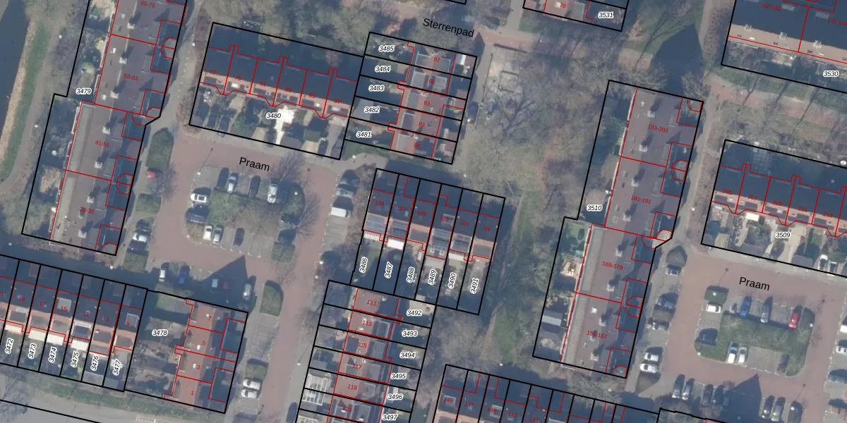 Het perceel waarop Praam 105 staat heeft een oppervlakte van 143 m². Dit is een middelgroot perceel. De perceeloppervlakte wordt geregistreerd door het Kadaster. Gedetailleerde informatie over de maten van dit perceel kunt u vinden in het rapport Kadastrale kaart met maatvoering van Praam 105.