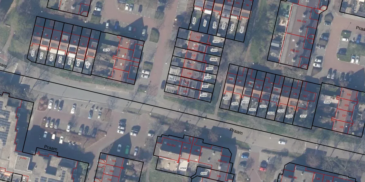 Het perceel waarop Praam 123 staat heeft een oppervlakte van 140 m². Dit is een middelgroot perceel. De perceeloppervlakte wordt geregistreerd door het Kadaster. Gedetailleerde informatie over de maten van dit perceel kunt u vinden in het rapport Kadastrale kaart met maatvoering van Praam 123.