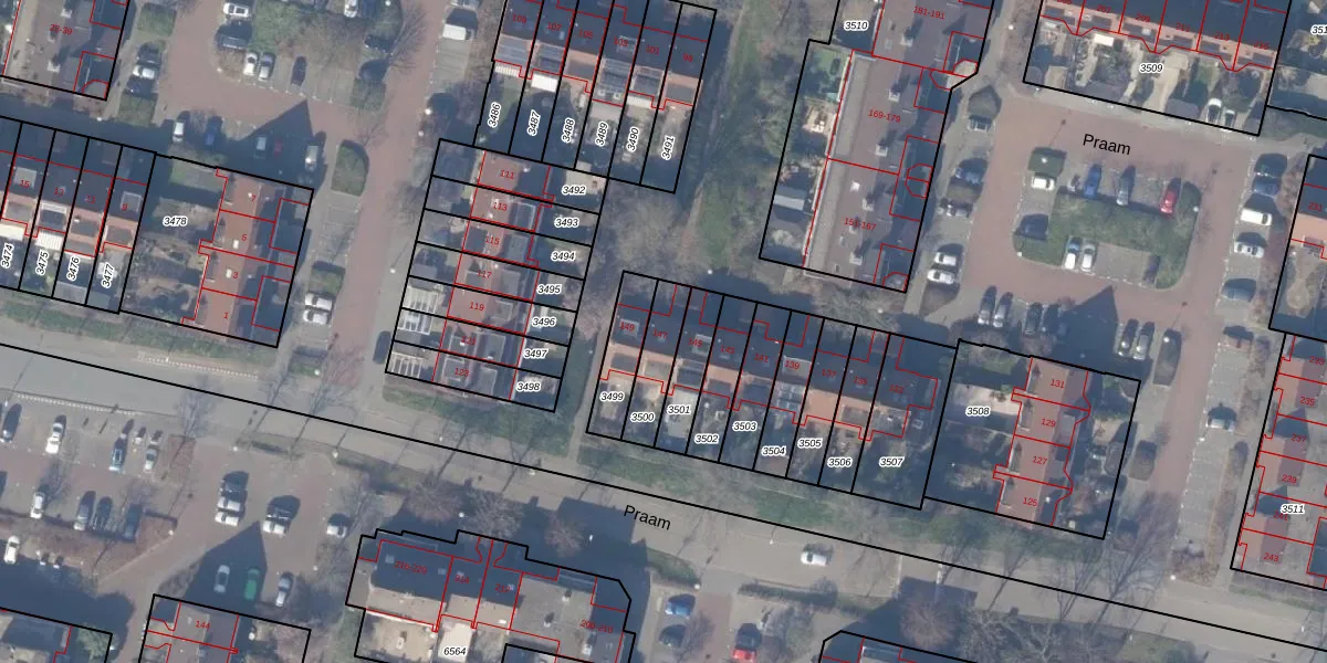 Het perceel waarop Praam 147 staat heeft een oppervlakte van 127 m². Dit is een middelgroot perceel. De perceeloppervlakte wordt geregistreerd door het Kadaster. Gedetailleerde informatie over de maten van dit perceel kunt u vinden in het rapport Kadastrale kaart met maatvoering van Praam 147.
