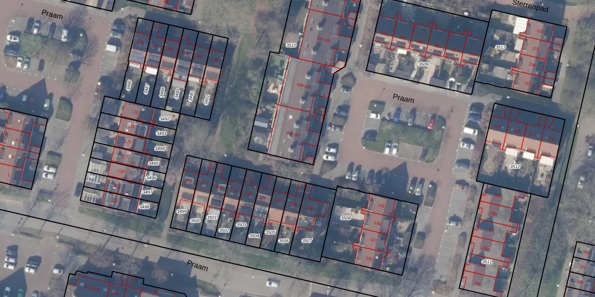 Het perceel waarop Praam 159 staat heeft een oppervlakte van 1538 m². Dit is een zeer groot perceel. De perceeloppervlakte wordt geregistreerd door het Kadaster. Gedetailleerde informatie over de maten van dit perceel kunt u vinden in het rapport Kadastrale kaart met maatvoering van Praam 159.