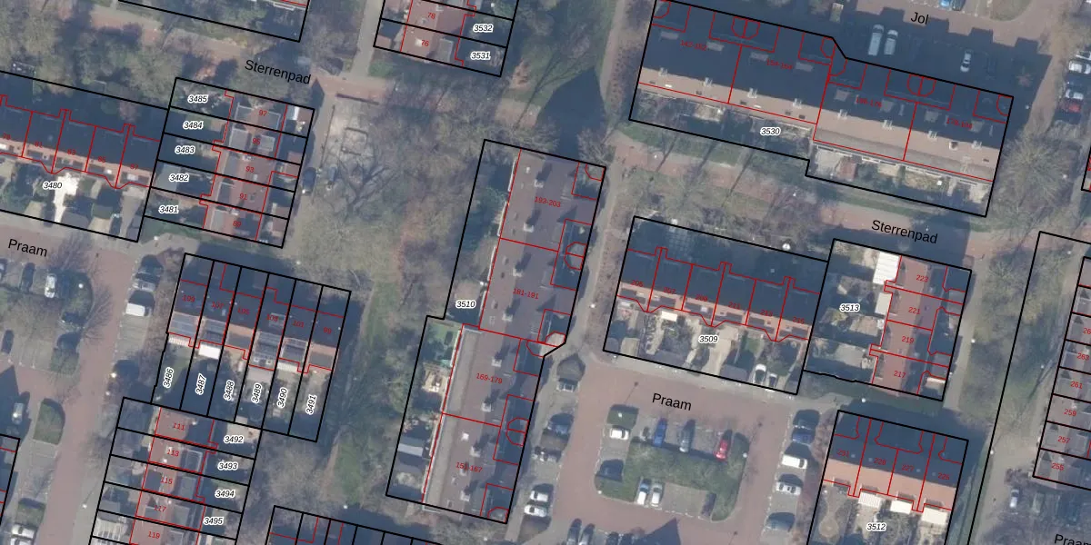Het perceel waarop Praam 191 staat heeft een oppervlakte van 1538 m². Dit is een zeer groot perceel. De perceeloppervlakte wordt geregistreerd door het Kadaster. Gedetailleerde informatie over de maten van dit perceel kunt u vinden in het rapport Kadastrale kaart met maatvoering van Praam 191.