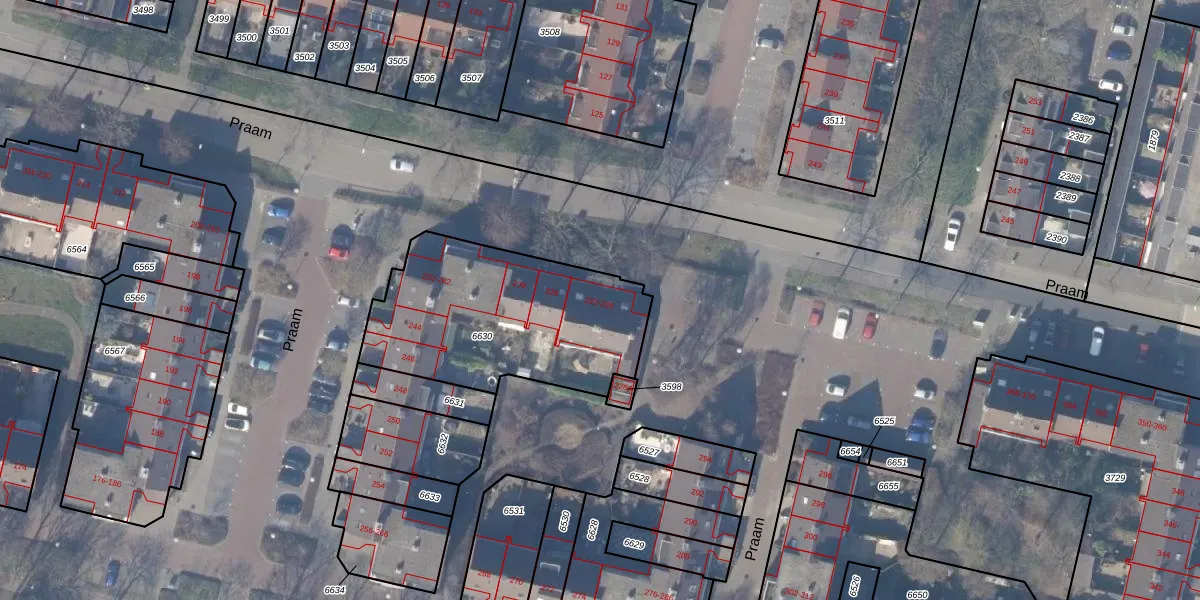 Het perceel waarop Praam 224 staat heeft een oppervlakte van 943 m². Dit is een groot perceel. De perceeloppervlakte wordt geregistreerd door het Kadaster. Gedetailleerde informatie over de maten van dit perceel kunt u vinden in het rapport Kadastrale kaart met maatvoering van Praam 224.