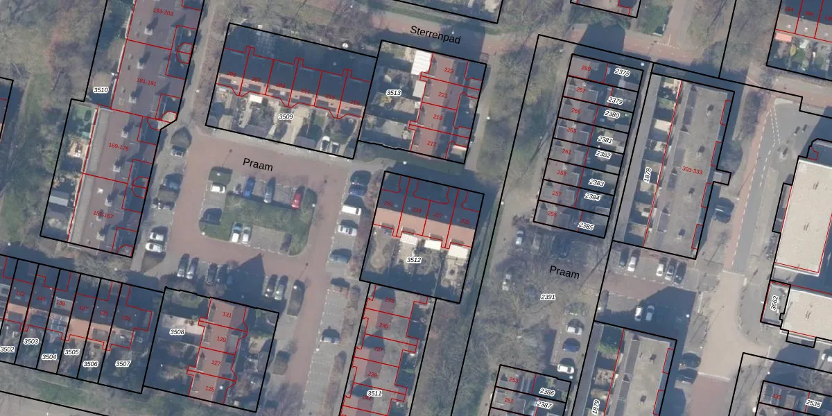 Het perceel waarop Praam 229 staat heeft een oppervlakte van 660 m². Dit is een groot perceel. De perceeloppervlakte wordt geregistreerd door het Kadaster. Gedetailleerde informatie over de maten van dit perceel kunt u vinden in het rapport Kadastrale kaart met maatvoering van Praam 229.