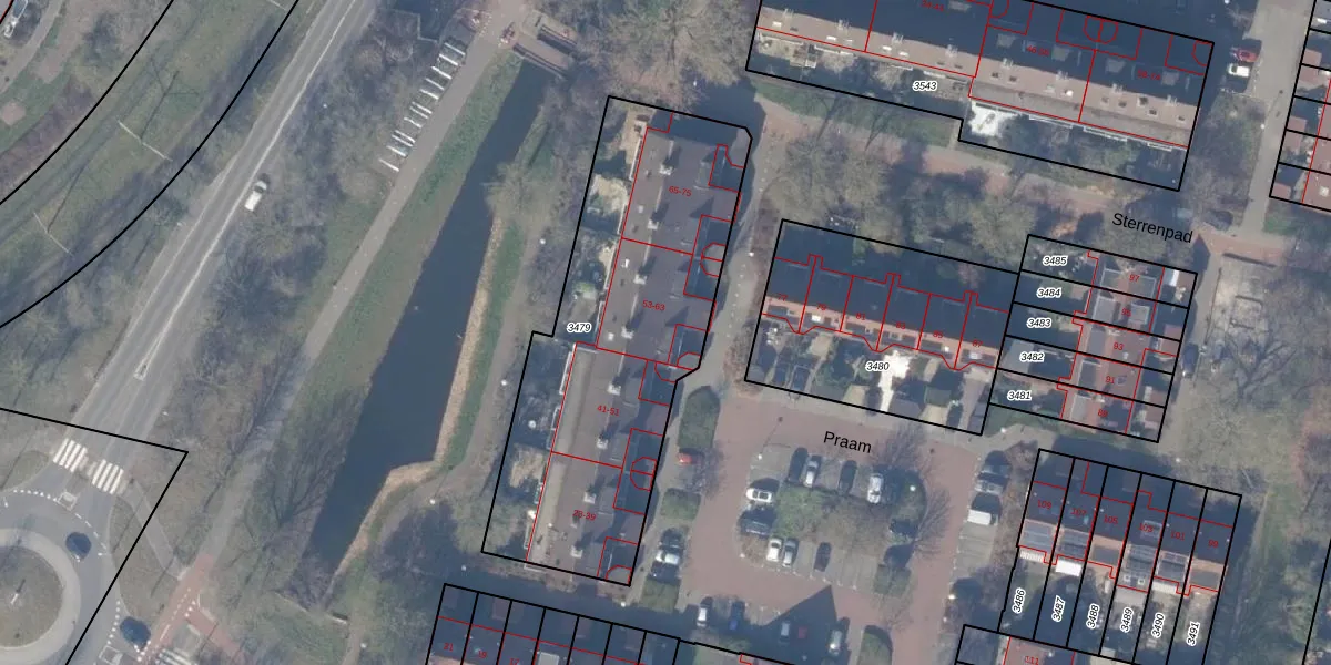 Het perceel waarop Praam 57 staat heeft een oppervlakte van 1615 m². Dit is een zeer groot perceel. De perceeloppervlakte wordt geregistreerd door het Kadaster. Gedetailleerde informatie over de maten van dit perceel kunt u vinden in het rapport Kadastrale kaart met maatvoering van Praam 57.