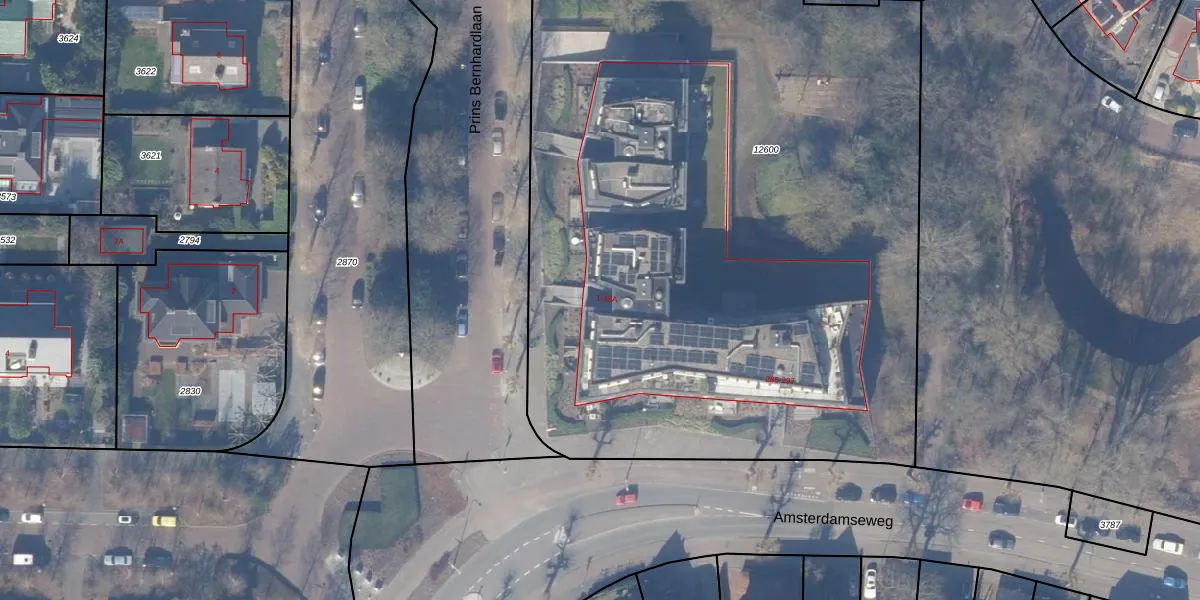 Prins Bernhardlaan 21 is gelegen op kadastraal perceel ASV00H12600. Deze kadastrale aanduiding is uniek en wordt gebruikt door het Kadaster om eigendomsrechten en andere zakelijke rechten vast te leggen. Het perceel maakt onderdeel uit van de kadastrale gemeente Amstelveen.