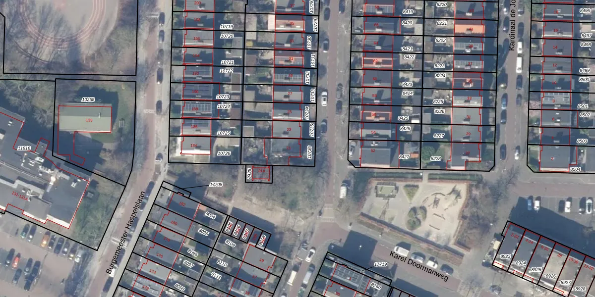 Het perceel waarop het adres ligt is ASV00-H-10736. De afkorting 'ASV00' staat voor kadastrale gemeente Amstelveen. Het perceel is kleiner dan gemiddeld in Amstelveen. Het perceel is 229 m² groot, terwijl het gemiddelde ligt op 1598,89 m². De grootste perceeloppervlakte in de kadastrale gemeente is 1,78 km². De kleinste oppervlakte bedraagt 0 m². Er zijn geen andere adressen aanwezig op het perceel. De huidige grenzen van het perceel zijn digitaal in de Basisregistratie Kadaster (BRK) geregistreerd op 30-07-2010.