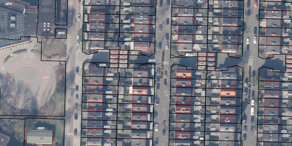 Prof. Lorentzlaan 39 is gelegen op kadastraal perceel ASV00H10727. Deze kadastrale aanduiding is uniek en wordt gebruikt door het Kadaster om eigendomsrechten en andere zakelijke rechten vast te leggen. Het perceel maakt onderdeel uit van de kadastrale gemeente Amstelveen.