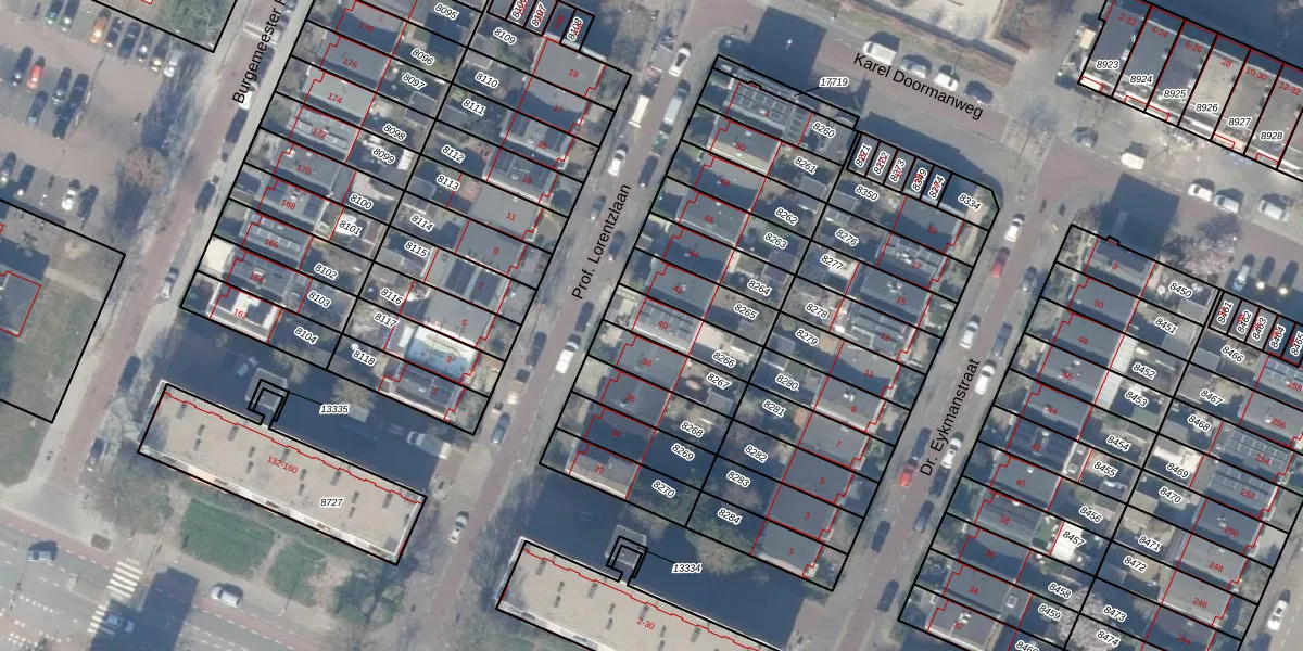 Gebruik de zoekbalk of klik op een perceel voor informatie over de adressen binnen dit perceel.