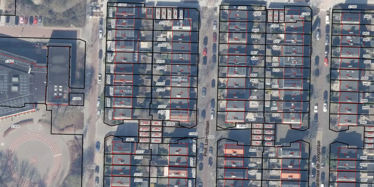 Gebruik de zoekbalk of klik op een perceel voor informatie over de adressen binnen dit perceel.