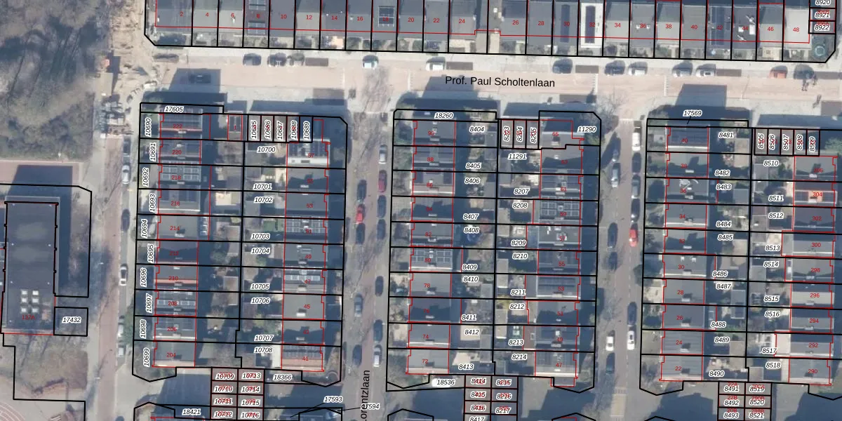 Gebruik de zoekbalk of klik op een perceel voor informatie over de adressen binnen dit perceel.