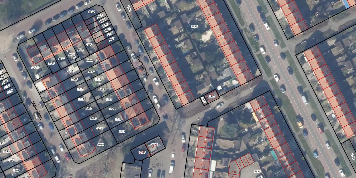 Het perceel waarop Prunuslaan 14 staat heeft een oppervlakte van 3674 m². Dit is een zeer groot perceel. De perceeloppervlakte wordt geregistreerd door het Kadaster. Gedetailleerde informatie over de maten van dit perceel kunt u vinden in het rapport Kadastrale kaart met maatvoering van Prunuslaan 14.