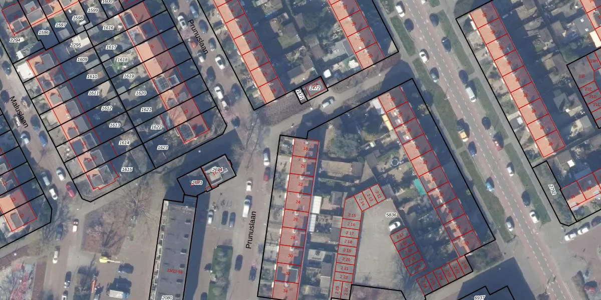 Het perceel waarop Prunuslaan 18 staat heeft een oppervlakte van 3988 m². Dit is een zeer groot perceel. De perceeloppervlakte wordt geregistreerd door het Kadaster. Gedetailleerde informatie over de maten van dit perceel kunt u vinden in het rapport Kadastrale kaart met maatvoering van Prunuslaan 18.