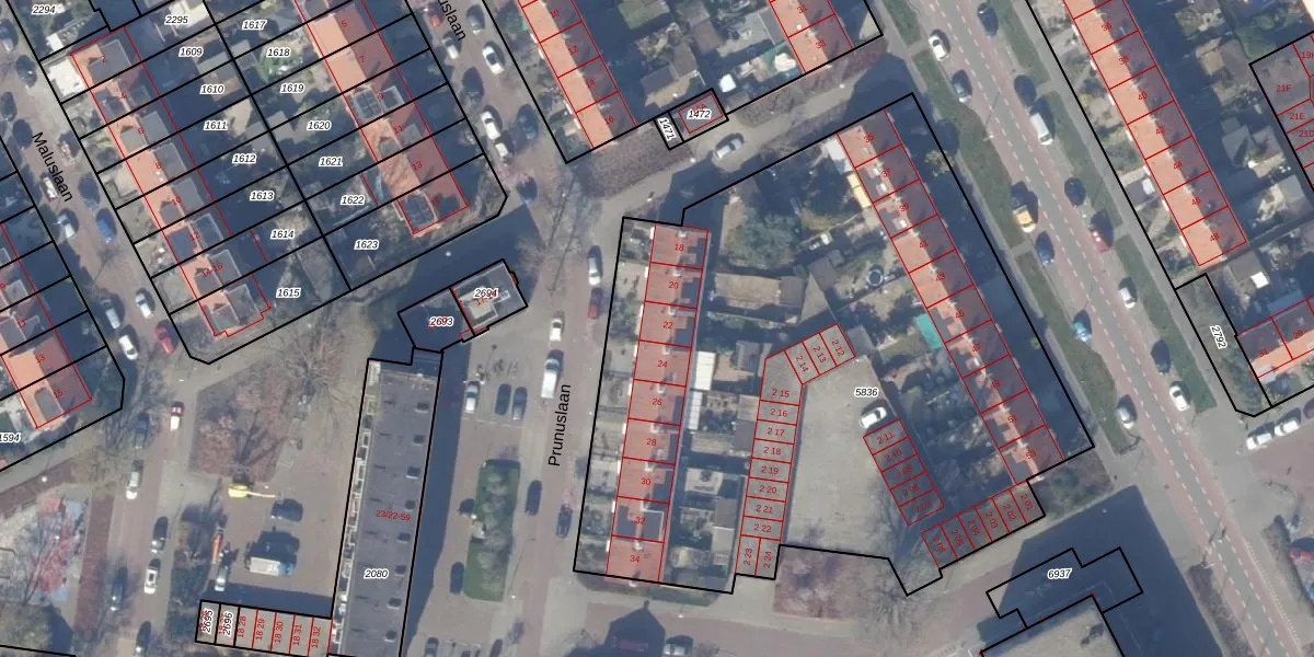 Het perceel waarop Prunuslaan 22 staat heeft een oppervlakte van 3988 m². Dit is een zeer groot perceel. De perceeloppervlakte wordt geregistreerd door het Kadaster. Gedetailleerde informatie over de maten van dit perceel kunt u vinden in het rapport Kadastrale kaart met maatvoering van Prunuslaan 22.