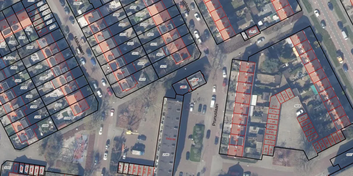 Prunuslaan 23 is gelegen op kadastraal perceel ASV00M2693. Deze kadastrale aanduiding is uniek en wordt gebruikt door het Kadaster om eigendomsrechten en andere zakelijke rechten vast te leggen. Het perceel maakt onderdeel uit van de kadastrale gemeente Amstelveen.
