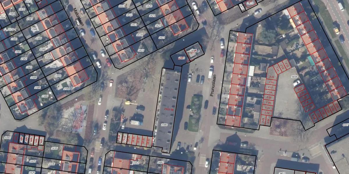 Prunuslaan 23-22 is gelegen op kadastraal perceel ASV00M2080. Deze kadastrale aanduiding is uniek en wordt gebruikt door het Kadaster om eigendomsrechten en andere zakelijke rechten vast te leggen. Het perceel maakt onderdeel uit van de kadastrale gemeente Amstelveen.