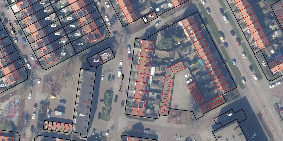 Prunuslaan 24 is gelegen op kadastraal perceel ASV00M5836. Deze kadastrale aanduiding is uniek en wordt gebruikt door het Kadaster om eigendomsrechten en andere zakelijke rechten vast te leggen. Het perceel maakt onderdeel uit van de kadastrale gemeente Amstelveen.