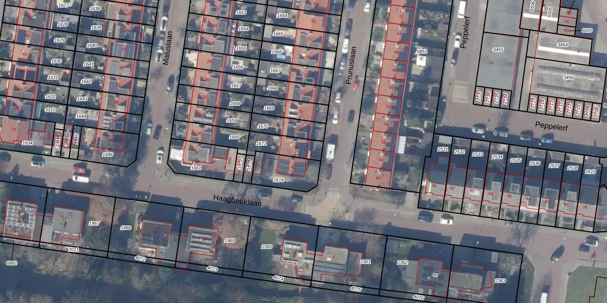 Het perceel waarop Prunuslaan 79 staat heeft een oppervlakte van 155 m². Dit is een middelgroot perceel. De perceeloppervlakte wordt geregistreerd door het Kadaster. Gedetailleerde informatie over de maten van dit perceel kunt u vinden in het rapport Kadastrale kaart met maatvoering van Prunuslaan 79.