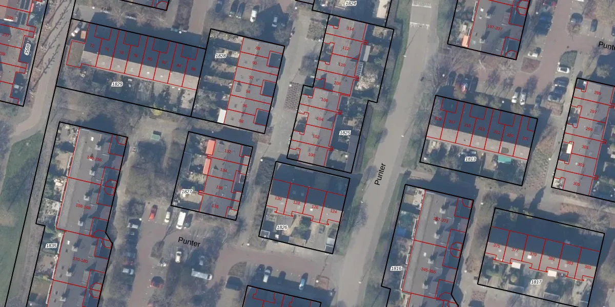 Punter 100 is gelegen op kadastraal perceel ASV00L1825. Deze kadastrale aanduiding is uniek en wordt gebruikt door het Kadaster om eigendomsrechten en andere zakelijke rechten vast te leggen. Het perceel maakt onderdeel uit van de kadastrale gemeente Amstelveen.