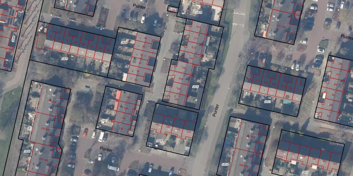 Punter 102 is gelegen op kadastraal perceel ASV00L1825. Deze kadastrale aanduiding is uniek en wordt gebruikt door het Kadaster om eigendomsrechten en andere zakelijke rechten vast te leggen. Het perceel maakt onderdeel uit van de kadastrale gemeente Amstelveen.