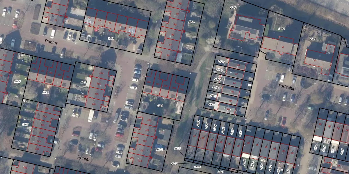 Het perceel waarop Punter 103 staat heeft een oppervlakte van 617 m². Dit is een groot perceel. De perceeloppervlakte wordt geregistreerd door het Kadaster. Gedetailleerde informatie over de maten van dit perceel kunt u vinden in het rapport Kadastrale kaart met maatvoering van Punter 103.