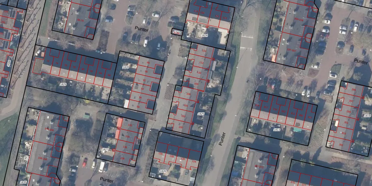 Punter 106 is gelegen op kadastraal perceel ASV00L1825. Deze kadastrale aanduiding is uniek en wordt gebruikt door het Kadaster om eigendomsrechten en andere zakelijke rechten vast te leggen. Het perceel maakt onderdeel uit van de kadastrale gemeente Amstelveen.