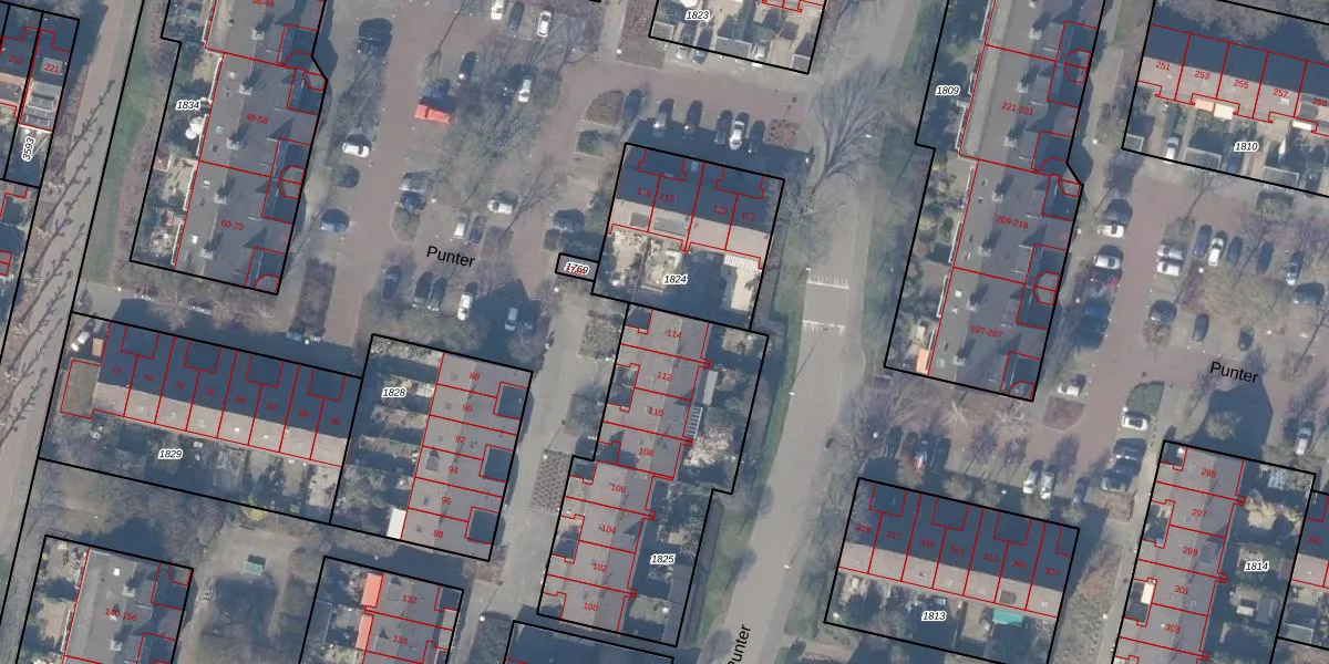 Punter 114 is gelegen op kadastraal perceel ASV00L1825. Deze kadastrale aanduiding is uniek en wordt gebruikt door het Kadaster om eigendomsrechten en andere zakelijke rechten vast te leggen. Het perceel maakt onderdeel uit van de kadastrale gemeente Amstelveen.