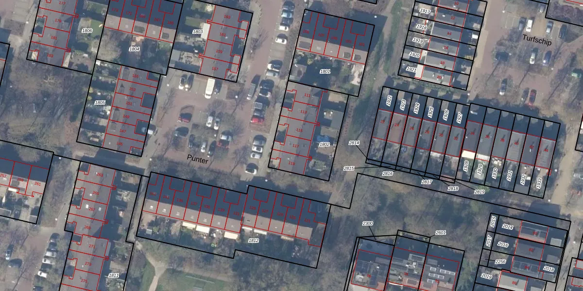 Het perceel waarop Punter 117 staat heeft een oppervlakte van 650 m². Dit is een groot perceel. De perceeloppervlakte wordt geregistreerd door het Kadaster. Gedetailleerde informatie over de maten van dit perceel kunt u vinden in het rapport Kadastrale kaart met maatvoering van Punter 117.