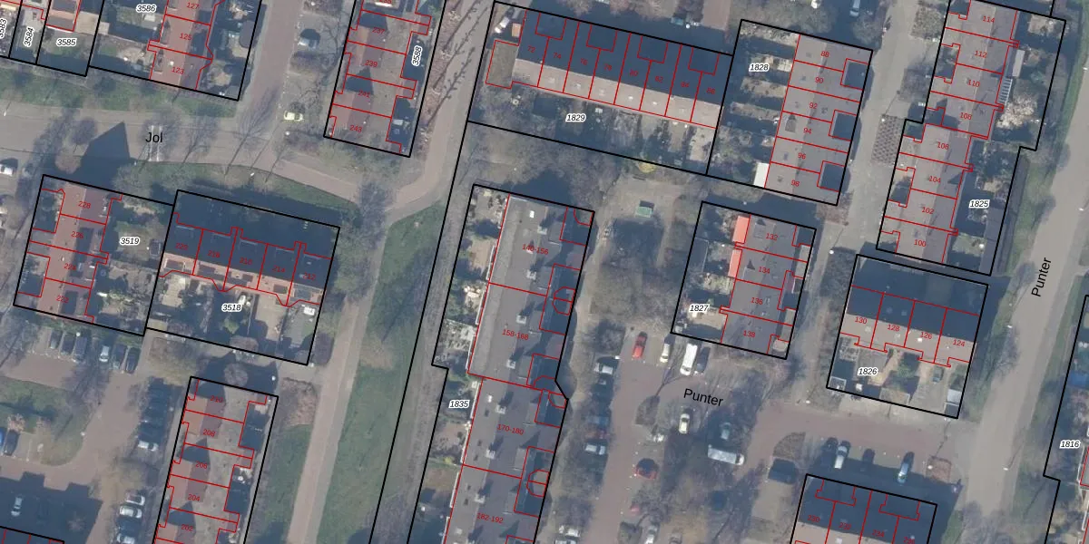 Het perceel waarop Punter 152 staat heeft een oppervlakte van 1534 m². Dit is een zeer groot perceel. De perceeloppervlakte wordt geregistreerd door het Kadaster. Gedetailleerde informatie over de maten van dit perceel kunt u vinden in het rapport Kadastrale kaart met maatvoering van Punter 152.