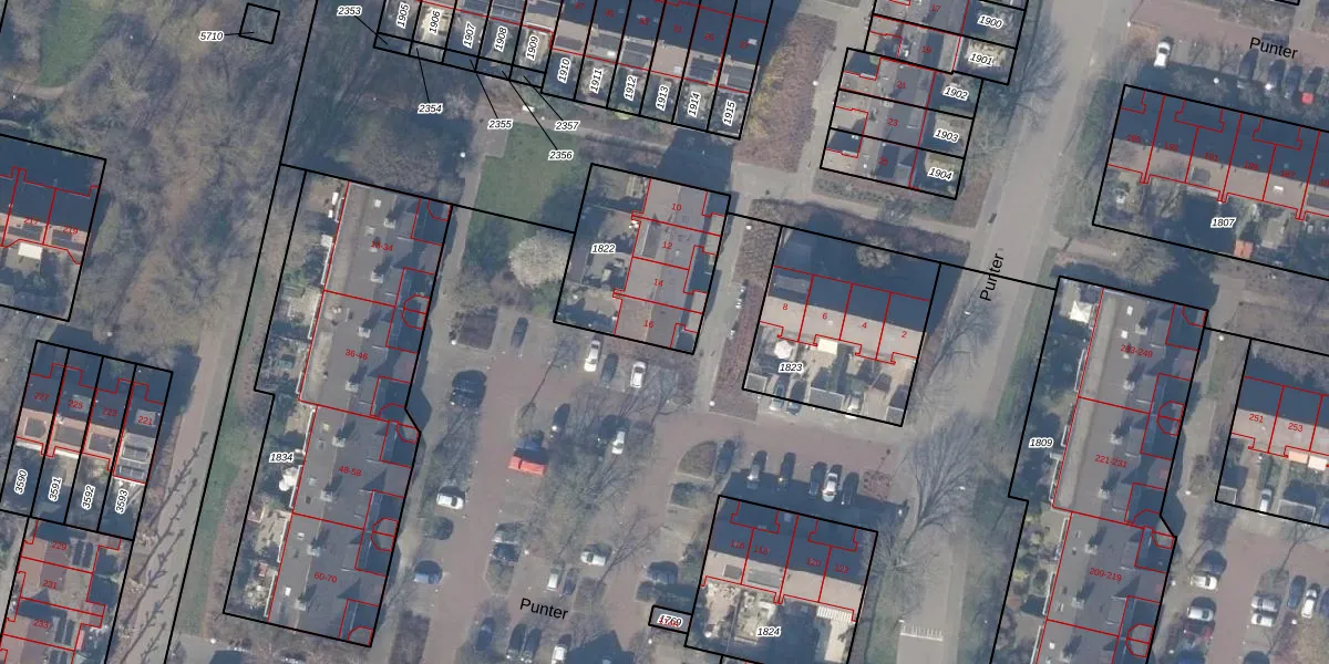 Het perceel waarop Punter 16 staat heeft een oppervlakte van 526 m². Dit is een groot perceel. De perceeloppervlakte wordt geregistreerd door het Kadaster. Gedetailleerde informatie over de maten van dit perceel kunt u vinden in het rapport Kadastrale kaart met maatvoering van Punter 16.