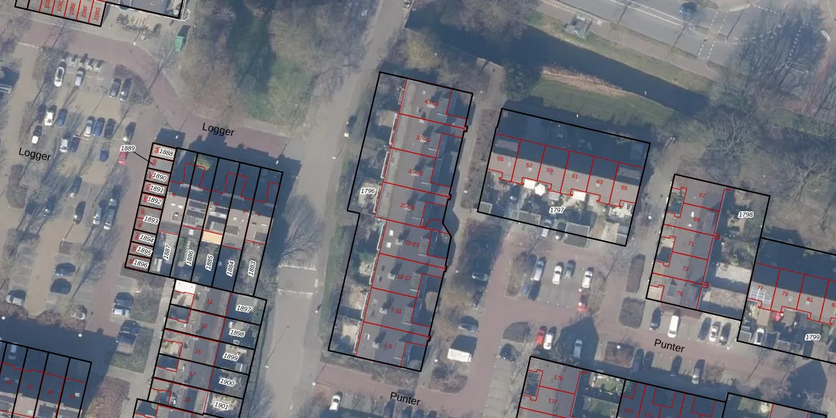Het perceel waarop Punter 25 staat heeft een oppervlakte van 1545 m². Dit is een zeer groot perceel. De perceeloppervlakte wordt geregistreerd door het Kadaster. Gedetailleerde informatie over de maten van dit perceel kunt u vinden in het rapport Kadastrale kaart met maatvoering van Punter 25.