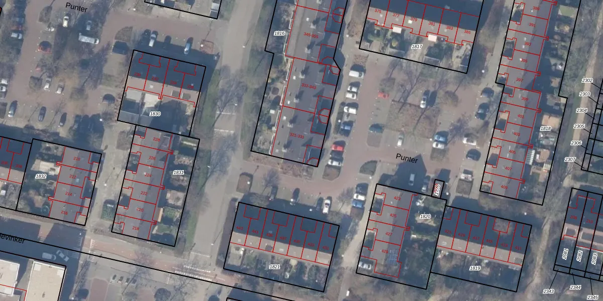 Punter 323 is gelegen op kadastraal perceel ASV00L1816. Deze kadastrale aanduiding is uniek en wordt gebruikt door het Kadaster om eigendomsrechten en andere zakelijke rechten vast te leggen. Het perceel maakt onderdeel uit van de kadastrale gemeente Amstelveen.