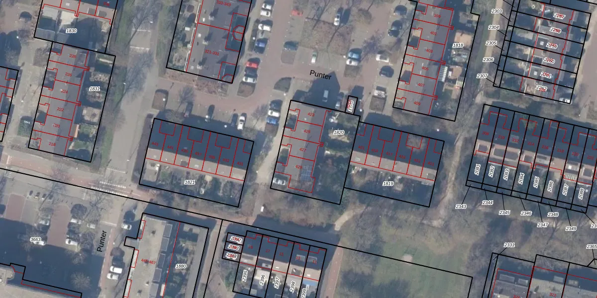 Punter 427 is gelegen op kadastraal perceel ASV00L1820. Deze kadastrale aanduiding is uniek en wordt gebruikt door het Kadaster om eigendomsrechten en andere zakelijke rechten vast te leggen. Het perceel maakt onderdeel uit van de kadastrale gemeente Amstelveen.
