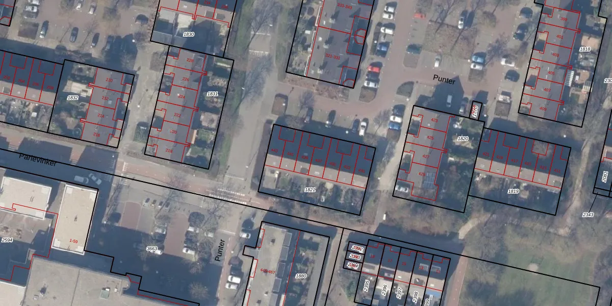 Punter 439 is gelegen op kadastraal perceel ASV00L1821. Deze kadastrale aanduiding is uniek en wordt gebruikt door het Kadaster om eigendomsrechten en andere zakelijke rechten vast te leggen. Het perceel maakt onderdeel uit van de kadastrale gemeente Amstelveen.
