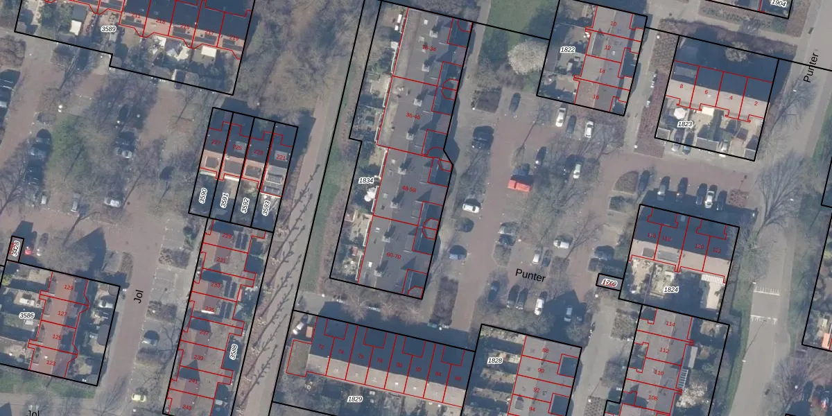 Het perceel waarop Punter 54 staat heeft een oppervlakte van 1545 m². Dit is een zeer groot perceel. De perceeloppervlakte wordt geregistreerd door het Kadaster. Gedetailleerde informatie over de maten van dit perceel kunt u vinden in het rapport Kadastrale kaart met maatvoering van Punter 54.