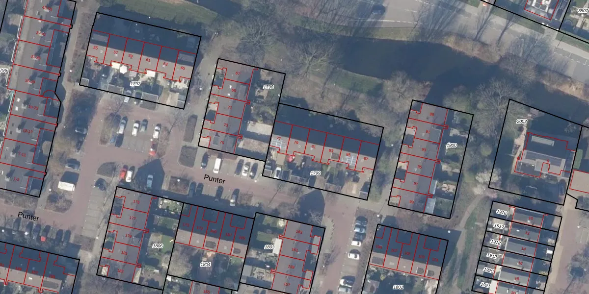 Het perceel waarop Punter 79 staat heeft een oppervlakte van 924 m². Dit is een groot perceel. De perceeloppervlakte wordt geregistreerd door het Kadaster. Gedetailleerde informatie over de maten van dit perceel kunt u vinden in het rapport Kadastrale kaart met maatvoering van Punter 79.