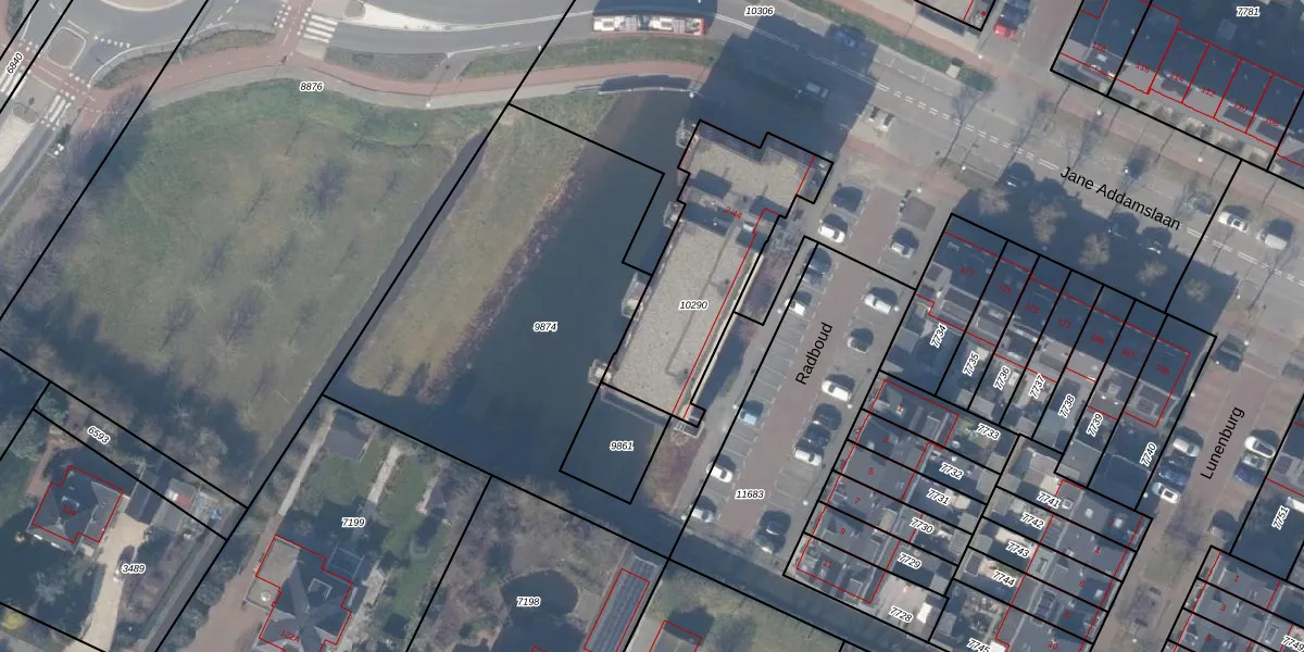 Het perceel waarop Radboud 42 staat heeft een oppervlakte van 675 m². Dit is een groot perceel. De perceeloppervlakte wordt geregistreerd door het Kadaster. Gedetailleerde informatie over de maten van dit perceel kunt u vinden in het rapport Kadastrale kaart met maatvoering van Radboud 42.