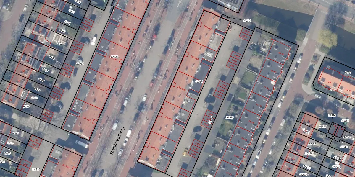 Het perceel waarop Rembrandtweg 136 staat heeft een oppervlakte van 1600 m². Dit is een zeer groot perceel. De perceeloppervlakte wordt geregistreerd door het Kadaster. Gedetailleerde informatie over de maten van dit perceel kunt u vinden in het rapport Kadastrale kaart met maatvoering van Rembrandtweg 136.