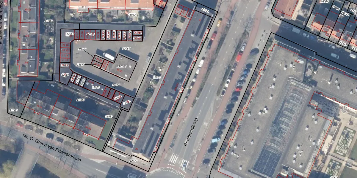 Het perceel waarop Rembrandtweg 195 staat heeft een oppervlakte van 2213 m². Dit is een zeer groot perceel. De perceeloppervlakte wordt geregistreerd door het Kadaster. Gedetailleerde informatie over de maten van dit perceel kunt u vinden in het rapport Kadastrale kaart met maatvoering van Rembrandtweg 195.