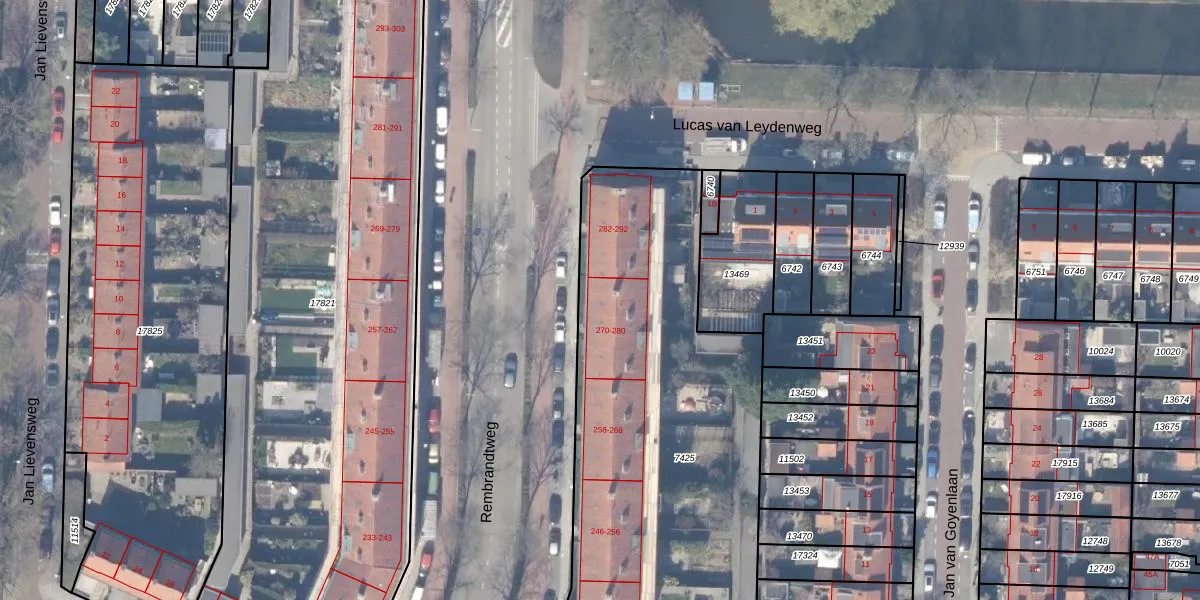 Het perceel waarop Rembrandtweg 276 staat heeft een oppervlakte van 2888 m². Dit is een zeer groot perceel. De perceeloppervlakte wordt geregistreerd door het Kadaster. Gedetailleerde informatie over de maten van dit perceel kunt u vinden in het rapport Kadastrale kaart met maatvoering van Rembrandtweg 276.
