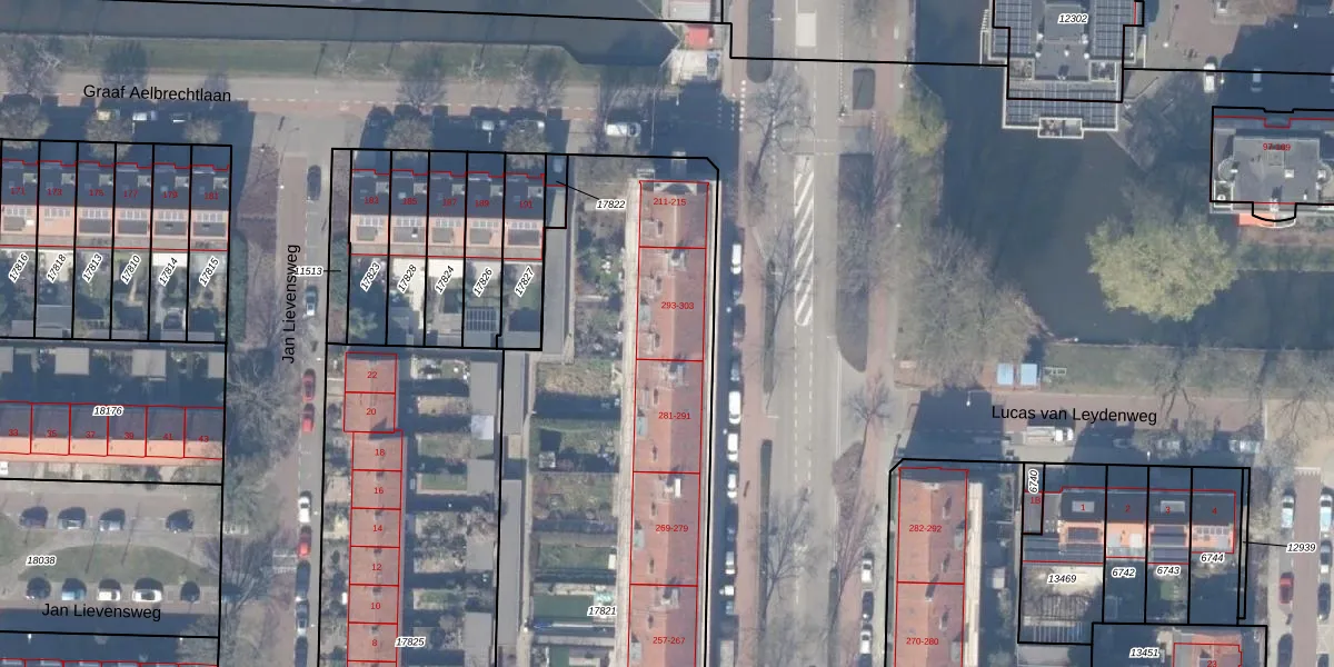 Rembrandtweg 297 is gelegen op kadastraal perceel ASV00H17821. Deze kadastrale aanduiding is uniek en wordt gebruikt door het Kadaster om eigendomsrechten en andere zakelijke rechten vast te leggen. Het perceel maakt onderdeel uit van de kadastrale gemeente Amstelveen.