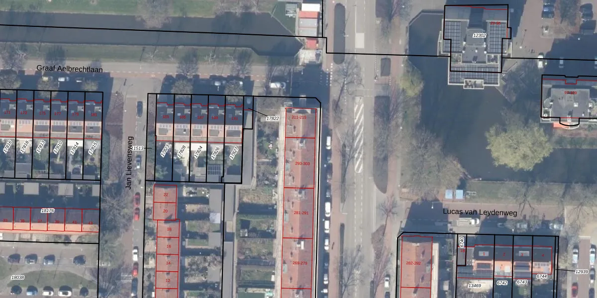 Het adres is gelegen op perceel 17821 in de sectie H en de kadastrale gemeente Amstelveen. De kadastrale aanduiding is aldus ASV00-H-17821. De gemiddelde perceeloppervlakte in de kadastrale gemeente Amstelveen is 1598,66 m². Dit perceel is met zijn 3927 m² dus groter dan gemiddeld. De grootste perceeloppervlakte in de kadastrale gemeente is 1,78 km². De kleinste oppervlakte bedraagt 0 m². Op het perceel zijn 47 adressen aanwezig. De huidige grenzen van het perceel zijn digitaal in de Basisregistratie Kadaster (BRK) geregistreerd op 04-10-2017.