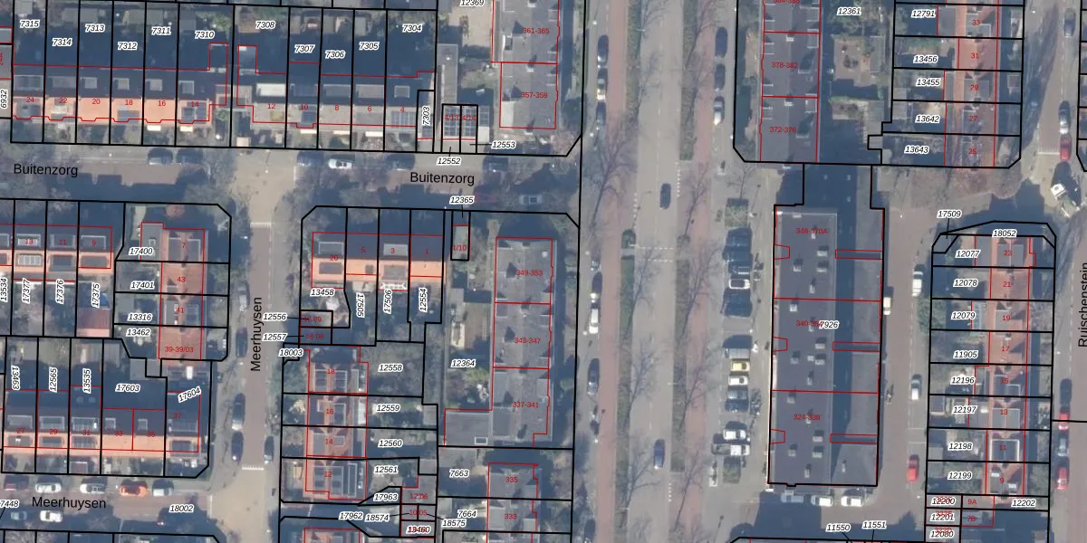Het perceel waarop Rembrandtweg 349 staat heeft een oppervlakte van 1096 m². Dit is een zeer groot perceel. De perceeloppervlakte wordt geregistreerd door het Kadaster. Gedetailleerde informatie over de maten van dit perceel kunt u vinden in het rapport Kadastrale kaart met maatvoering van Rembrandtweg 349.