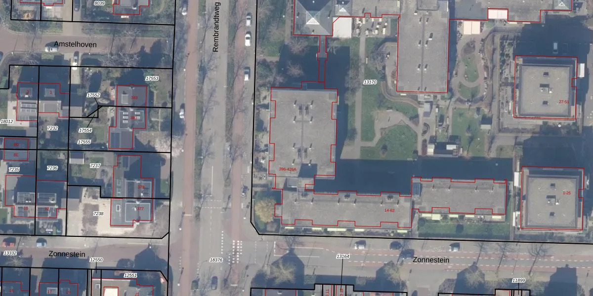 Rembrandtweg 422-A is gelegen op kadastraal perceel ASV00H13170. Deze kadastrale aanduiding is uniek en wordt gebruikt door het Kadaster om eigendomsrechten en andere zakelijke rechten vast te leggen. Het perceel maakt onderdeel uit van de kadastrale gemeente Amstelveen.
