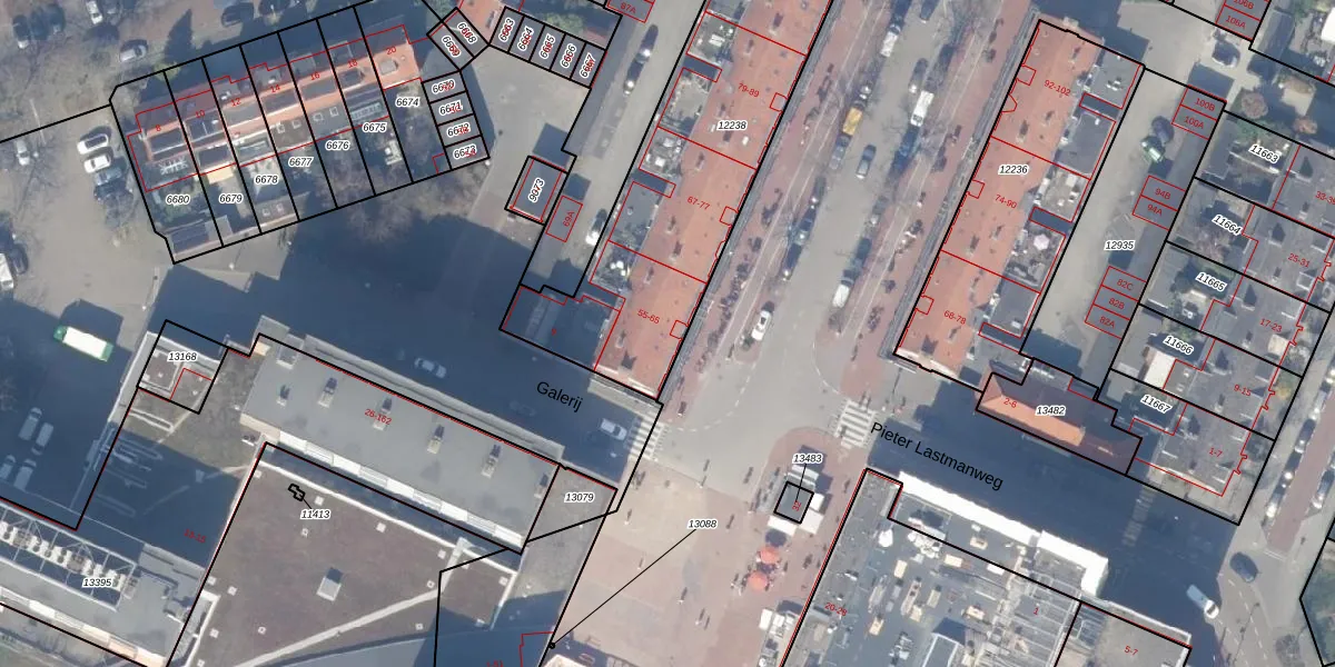 Het adres is gelegen op perceel 12238 in de sectie H en de kadastrale gemeente Amstelveen. De kadastrale aanduiding is aldus ASV00-H-12238. Het perceel is kleiner dan gemiddeld in Amstelveen. Het perceel is 1354 m² groot, terwijl het gemiddelde ligt op 1598,78 m². Het grootste perceel in de kadastrale gemeente is 1,78 km². Het kleinste perceel heeft een oppervlakte van 0 m². Op het perceel zijn 24 adressen aanwezig. De huidige grenzen van het perceel zijn digitaal in de Basisregistratie Kadaster (BRK) geregistreerd op 20-10-2010.