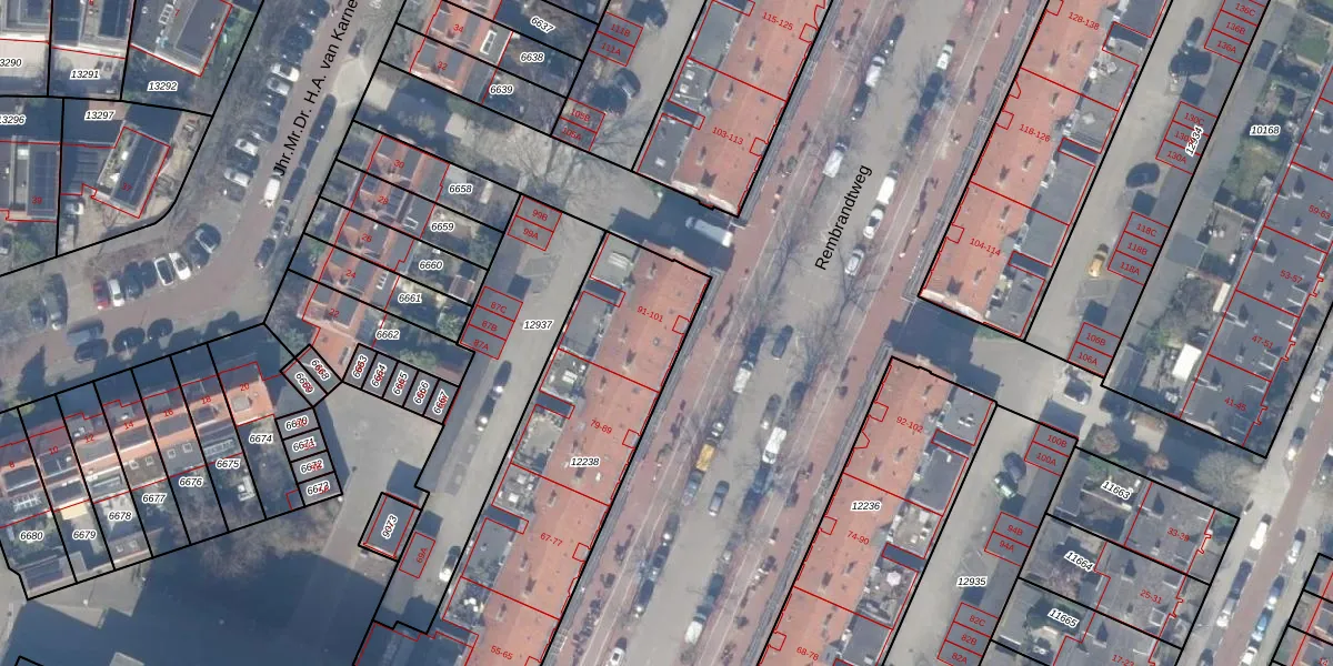 Rembrandtweg 93 is gelegen op kadastraal perceel ASV00H12238. Deze kadastrale aanduiding is uniek en wordt gebruikt door het Kadaster om eigendomsrechten en andere zakelijke rechten vast te leggen. Het perceel maakt onderdeel uit van de kadastrale gemeente Amstelveen.