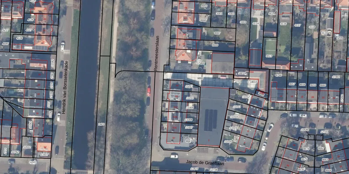 Gebruik de zoekbalk of klik op een perceel voor informatie over de adressen binnen dit perceel.
