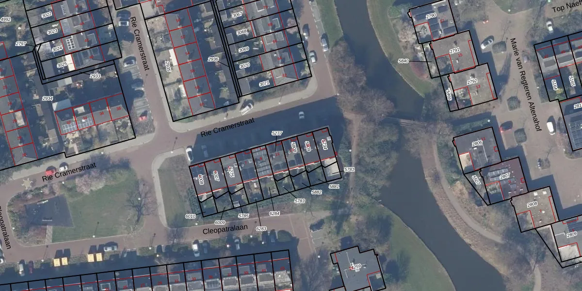 Het perceel waarop Rie Cramerstraat 13 staat heeft een oppervlakte van 69 m². Dit is een klein perceel. De perceeloppervlakte wordt geregistreerd door het Kadaster. Gedetailleerde informatie over de maten van dit perceel kunt u vinden in het rapport Kadastrale kaart met maatvoering van Rie Cramerstraat 13.