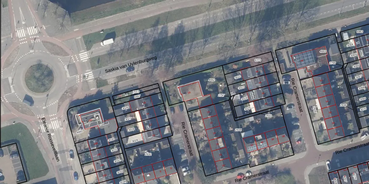 Gebruik de zoekbalk of klik op een perceel voor informatie over de adressen binnen dit perceel.