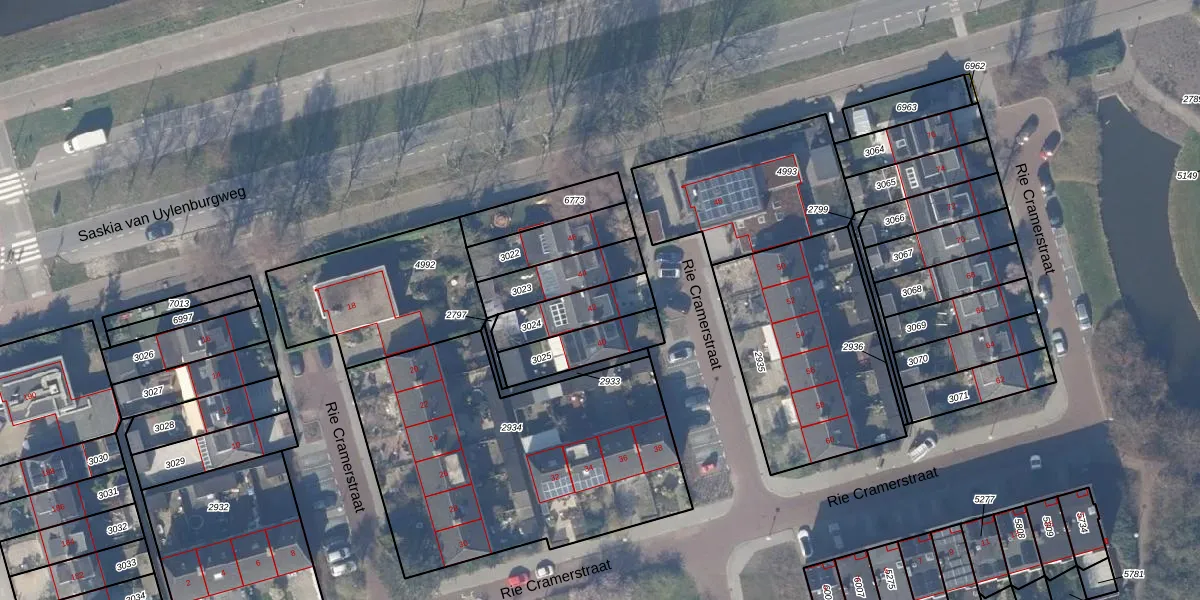 Gebruik de zoekbalk of klik op een perceel voor informatie over de adressen binnen dit perceel.